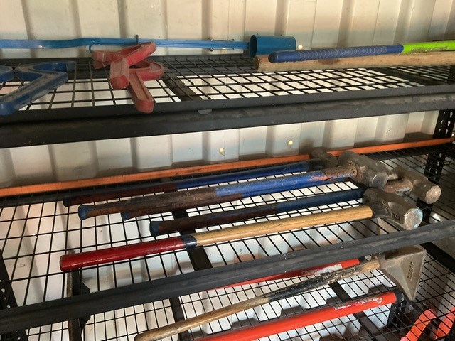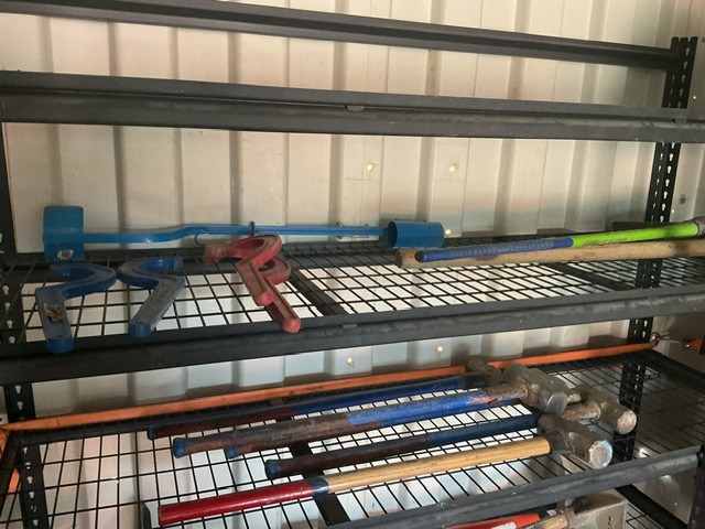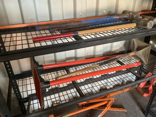 Assorted Sledge Hammers, Handheld Compactors and Picks