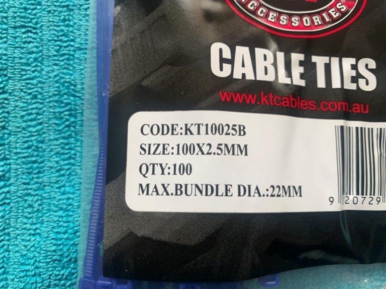 New in Packaging KT Cable Ties, 100 x 2.5mm