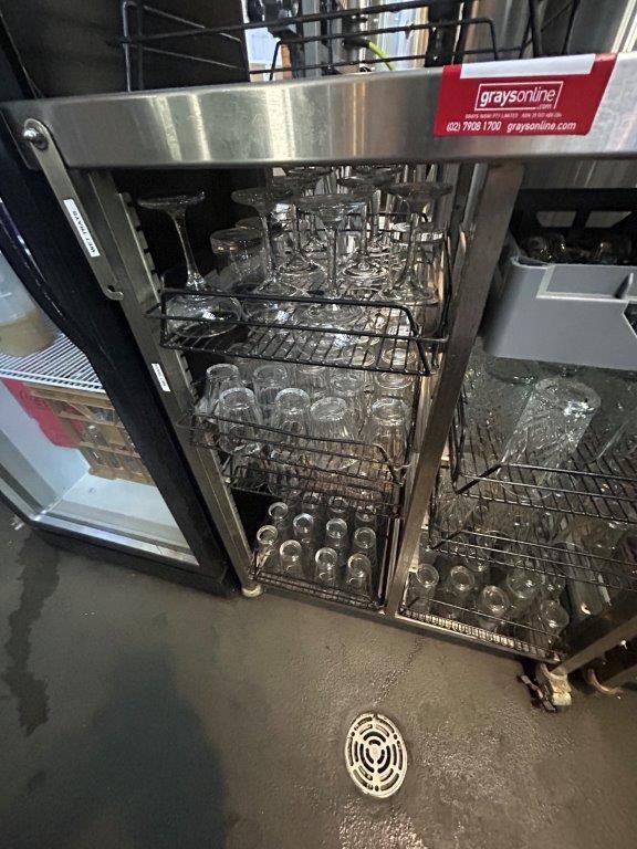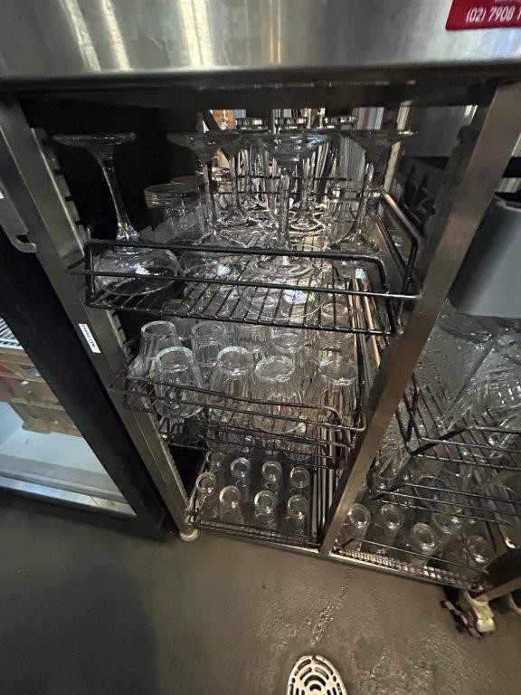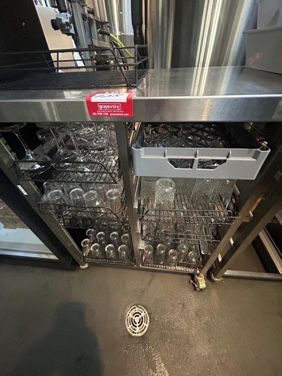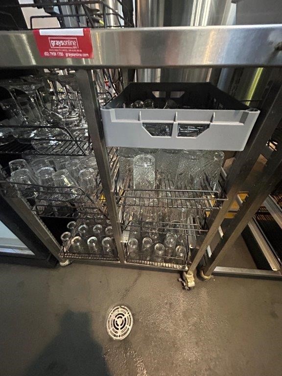 Stainless Steel Mobile Double Side Glass Rack Trolley & Contents
