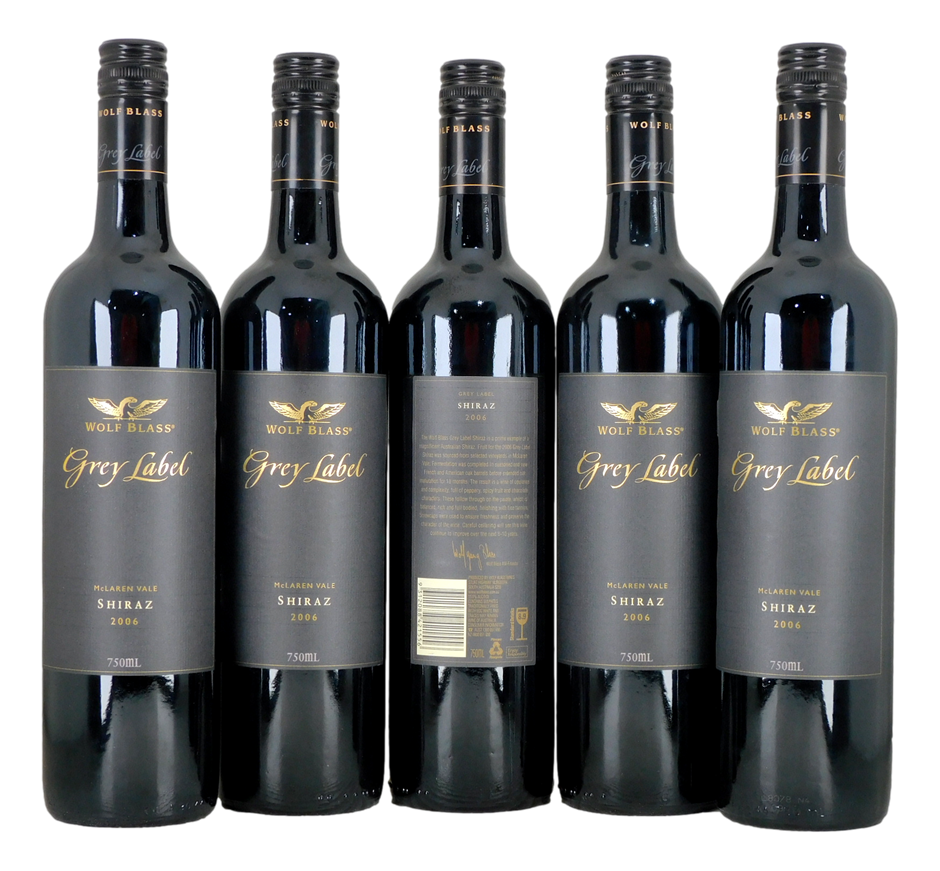 Wolf Blass Grey Label Shiraz 2006 (5x 750mL), Barossa Valley.