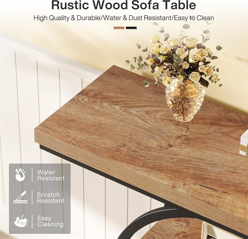 TRIBESIGNS 105cm Console Table, 4-Tier Entryway Console Table with Circle Base for Living Room, Hallway, Foyer, Light Brown. NB: Has been used, minor scuffs & Does NOT come assembled. (Code: B0CYBGQPHC-HBU) (334851-129)