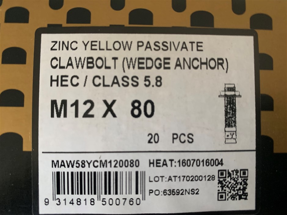 New in Boxes Hobson Zinc Yellow Passivate Claw Bolts - Quantity 4