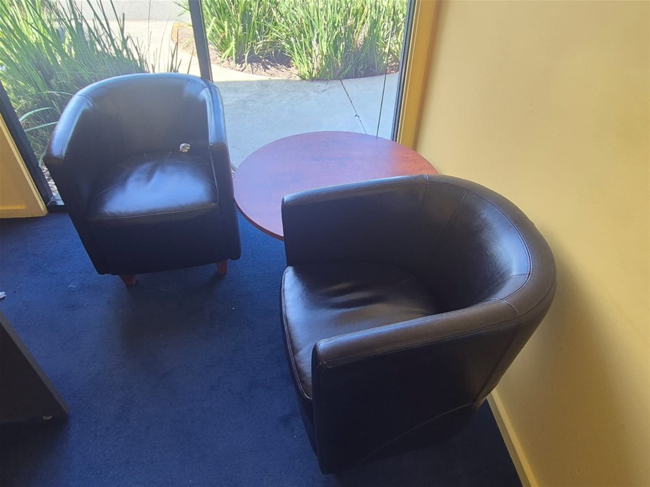 2 Black Bucket Chairs with Round Table