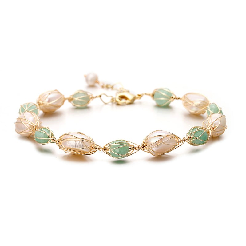 BIJ`OR - Designer Handmade Genuine White and Mint Freshwater Pearl Bracelet. RRP: 99