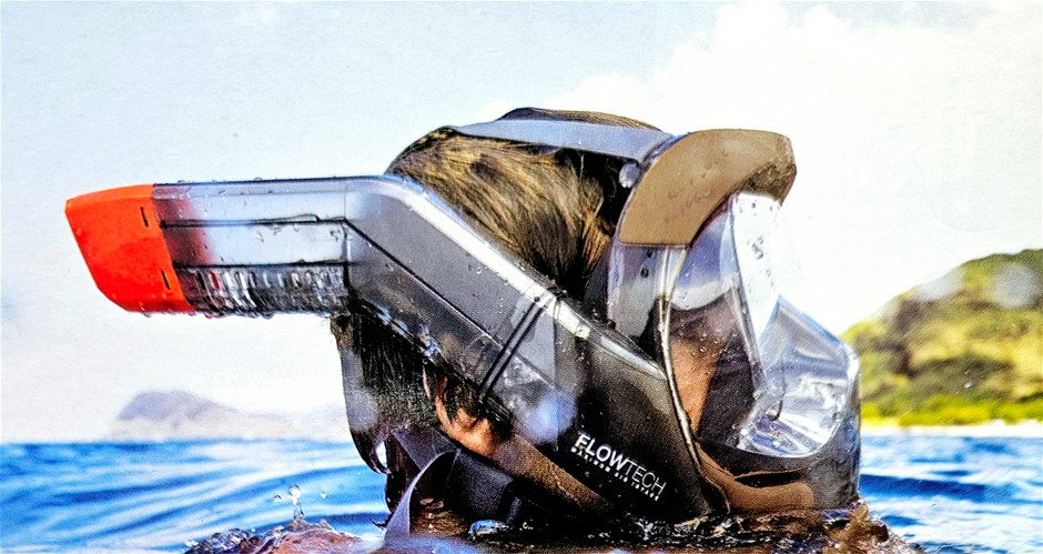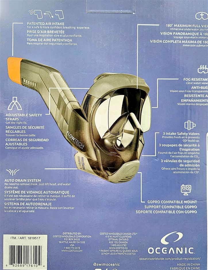 OCEANIC Full Face Snorkel Mask, Flow Tech Maximum Air Intake, Size L, Black. NB: Has been used & Intake tube cracked. (Code: CC113872-U1) (333524-139)