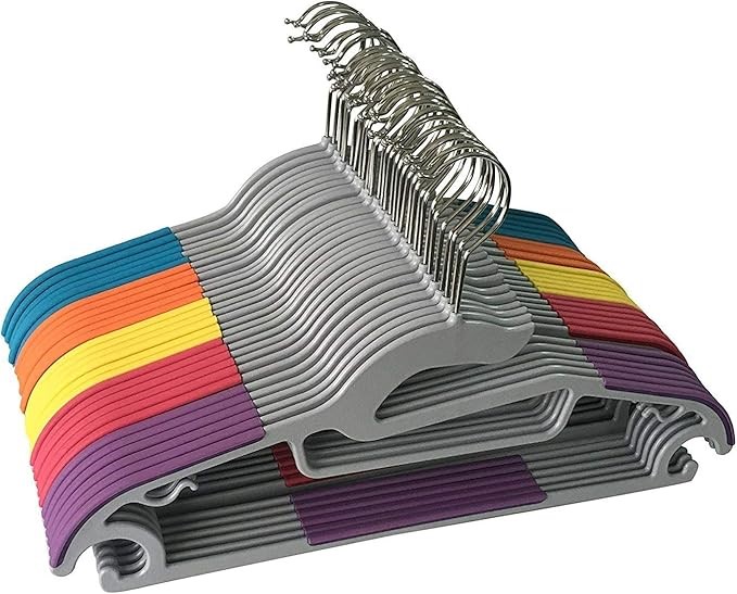 JERONIC P3500M 30 Pack Light-Weight Non-Slip Durable Clothes Plastic Hangers Various Perfect for Pants, Dress, Jacket, Underwear and Shirt, 5 Mixed Color 01, 30 Count. (Code: B0747SNQJ3-NE) (334423-139)