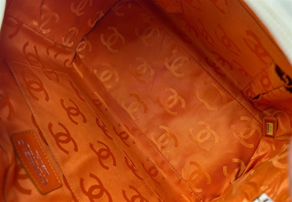 • Neon orange nylon CC logo lining
