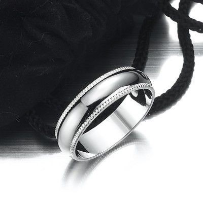 Rhodium Plated Men`s Etched Band Ring (6mm) - US Size 7