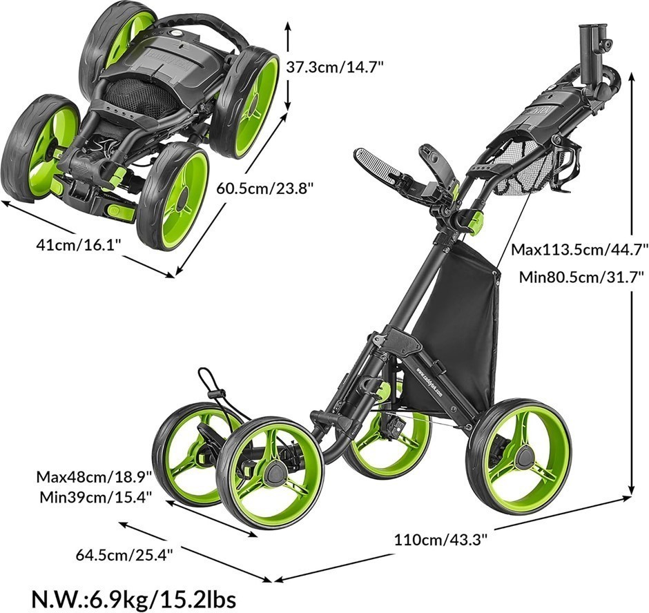 CADDYTEK 4 Wheel Golf Push Cart - Compact, Lightweight, Close Folding Push Pull Caddy Cart Trolley - Explorer V8, Lime (Code: B07DT22K2G) (140602-149)