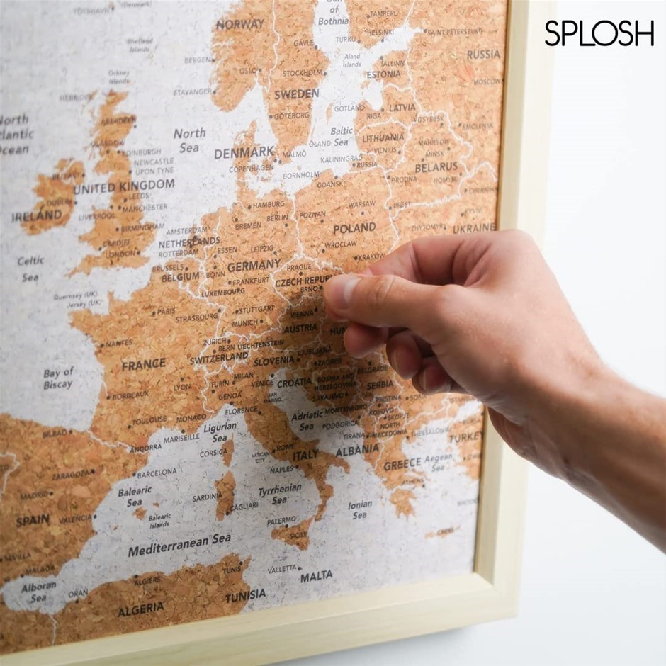 SPLOSH Cork Pin Board Europe Travel Map, 55 x 36 cm. (Code: B08RZ7GY5N) (139866-153)