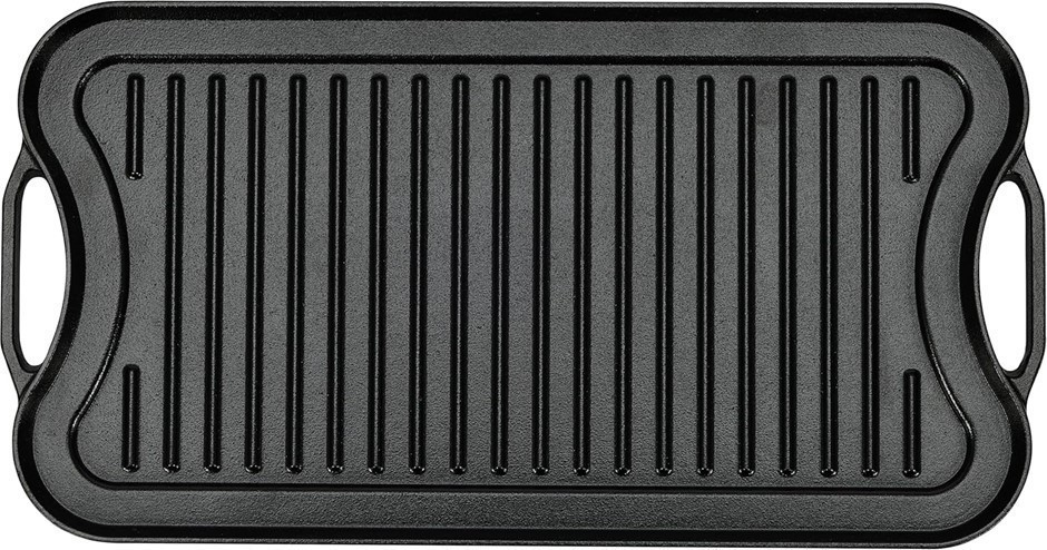 AMAZON BASICS Pre-Seasoned Cast Iron Reversible Rectangular Grill/Griddle, Black, 50.8 cm x 26.4 cm x 2.5 cm. (Code: B07GP87S39) (332115-153)