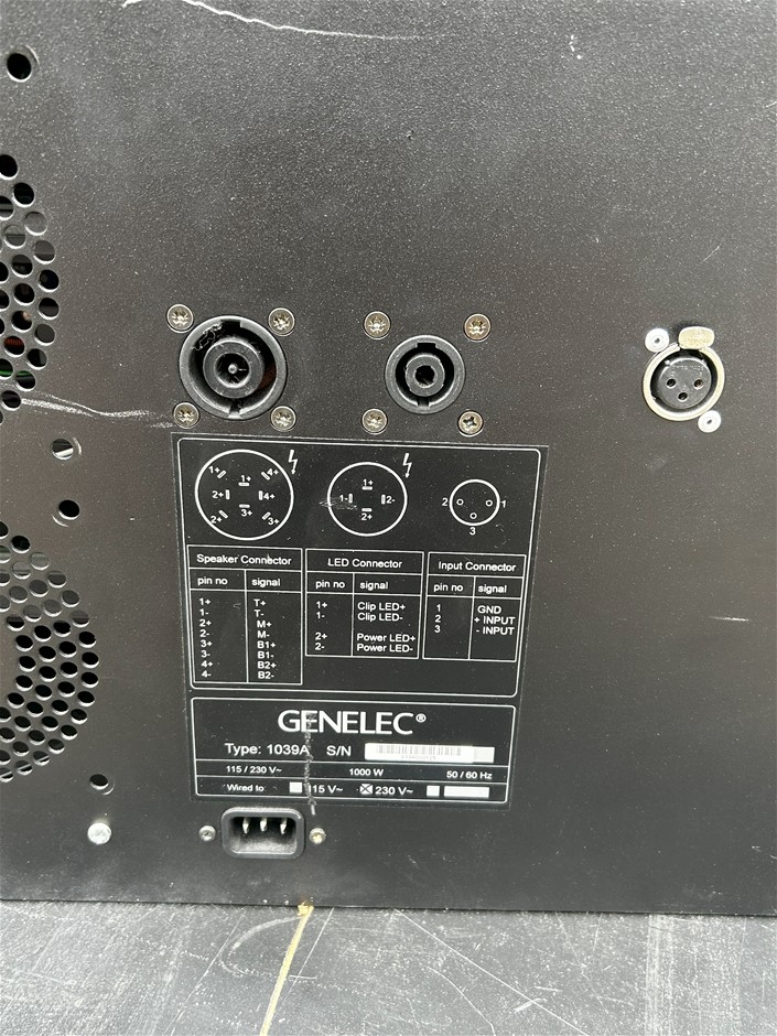 2 x Genelec 1039A Tri-Amplified Monitoring System & 3-Way Speaker, Condition notes: Unknown (untested)