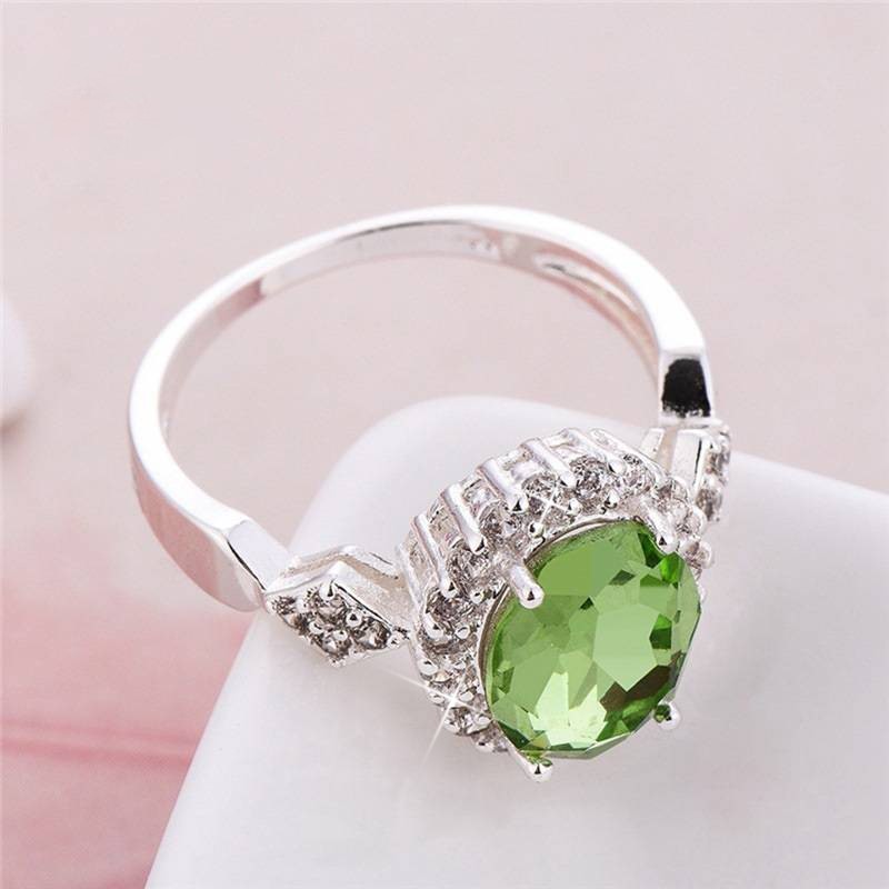 Designer Simulated Diamond Green Statement Oval Ring in Silver - US Size 8