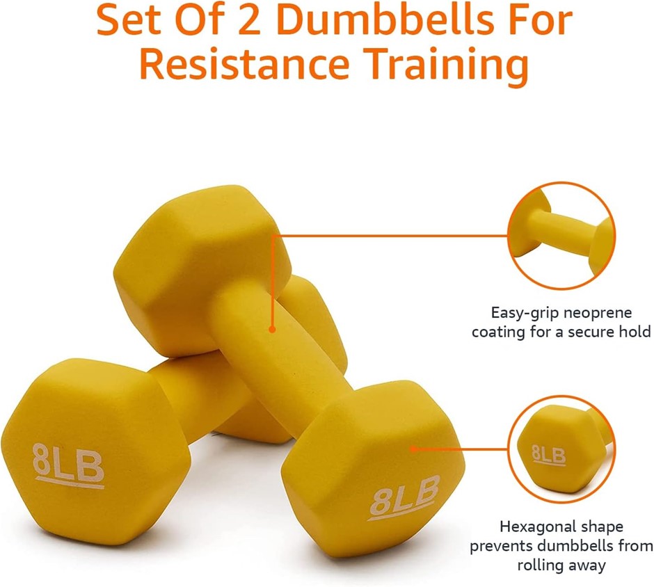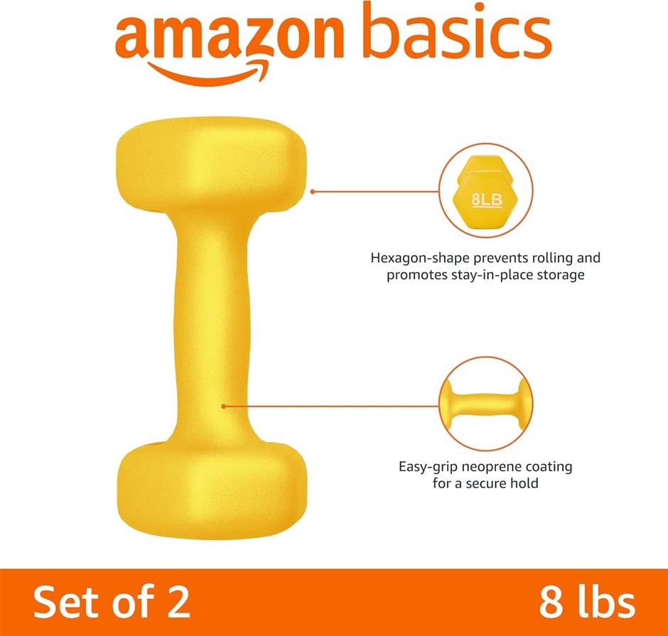 AMAZON BASICS Neoprene Hexagon Workout Dumbbell Hand Weight, 3.6kg / 8lbs - Set of 2. NB: Has some marks, damaged box (Code: B01LR5S1WA-DB) (139390-161)