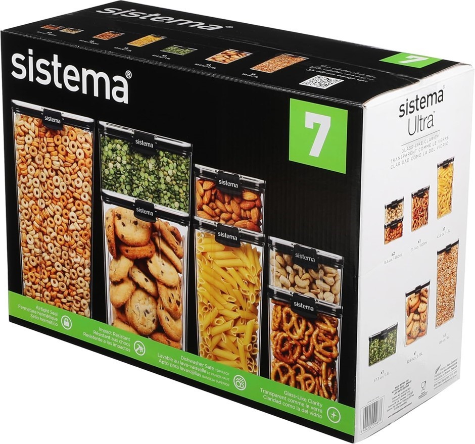 SISTEMA Tritan Ultra Airtight Pantry & Kitchen Storage 7 Square Plastic Food Containers with Lids. (Code: B0D2GVLYWW) (139352-163)