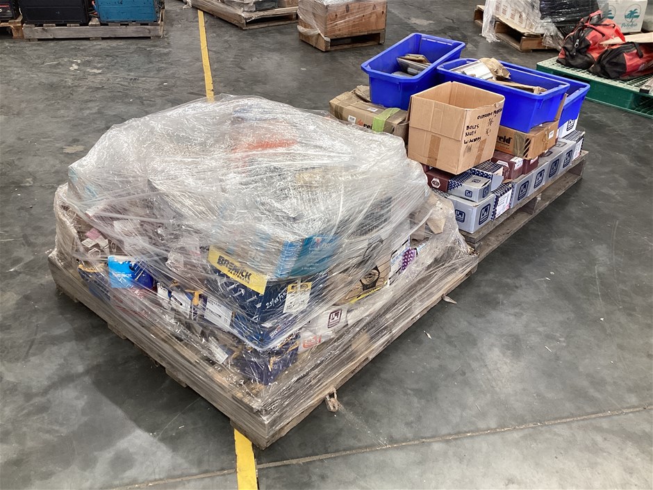 • Includes assorted nuts, bolts, screws, washers and sundry items. Inspection Recommended. 2x part pallets
