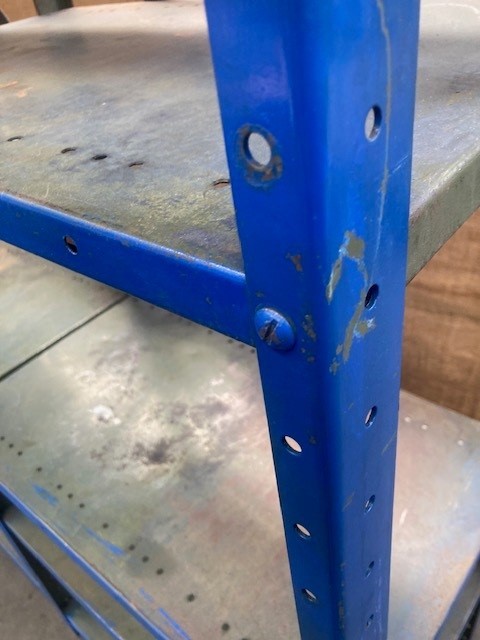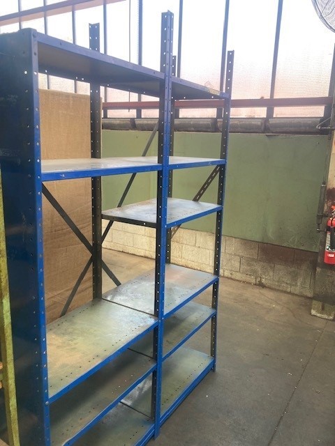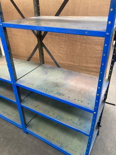 • Blue steel metal shelf units 2 off bolted together
