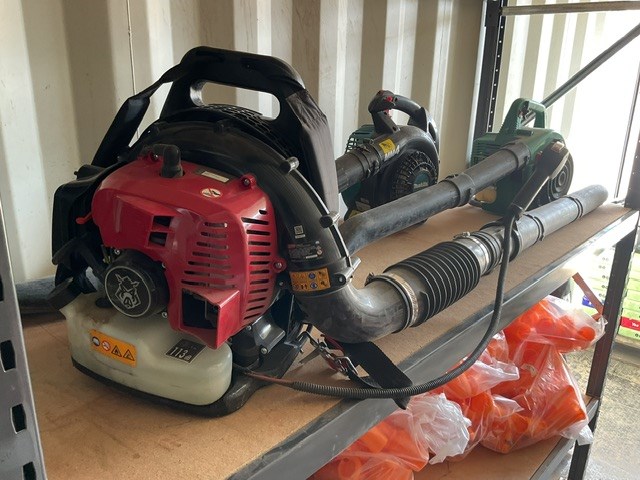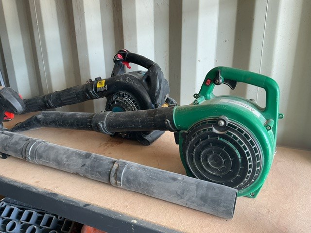 3 x Leaf Blowers, Concrete Chairs
