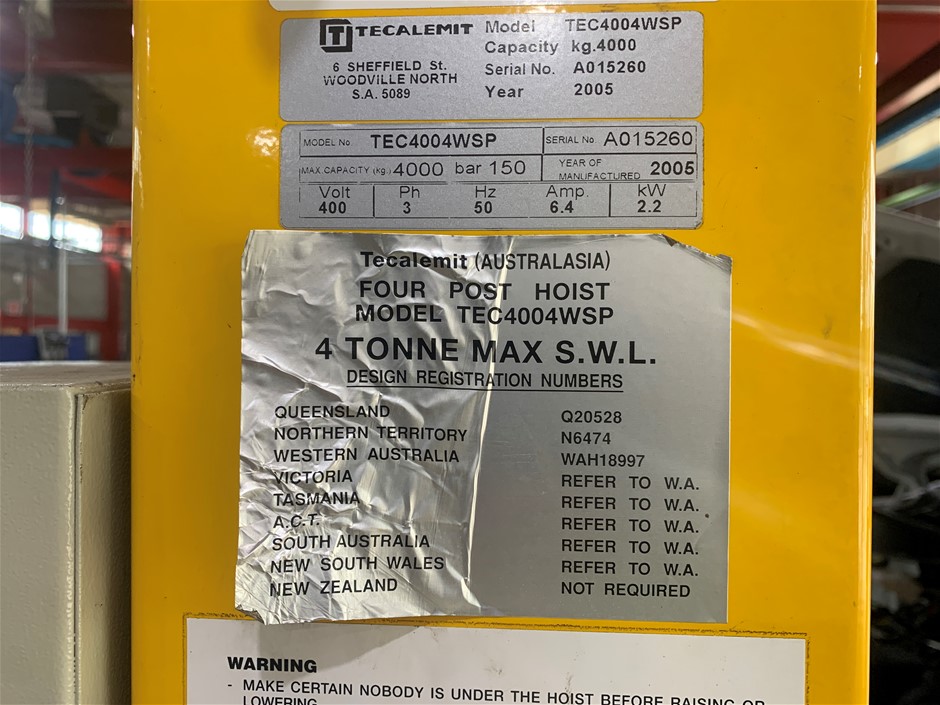 Tecalemit 4 Tonne 4 Post Hoist with Internal Jacking System