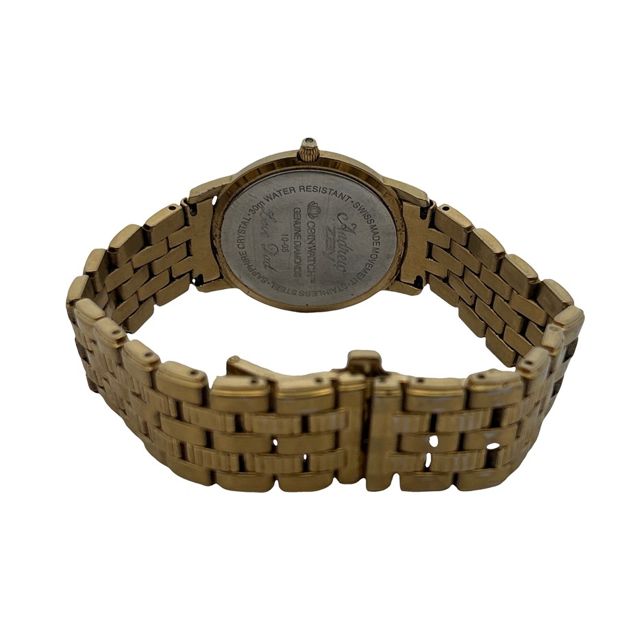 • Gold tone bracelet with fold over double deployment clasp. Note: engraving on back case
