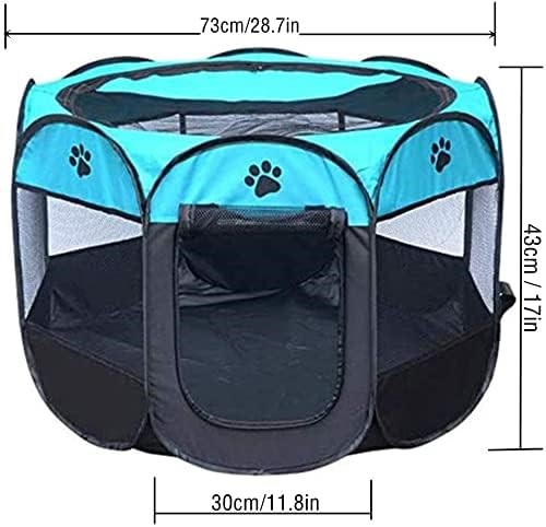 TECAGEAON Pet Portable Foldable Playpen, Removable Zipper Top, Indoor and Outdoor Use (Blue). NB: Not Boxed & Dusty From Storage. (Code: B09LH273CZ-NB2) (334210-174)