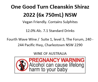 One Good Turn Cleanskin Shiraz 2022 (6x 750mL) NSW