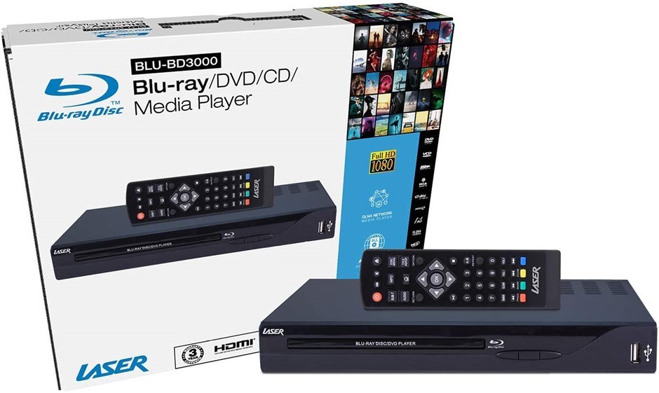 3 x LASER Blu-Ray Player, BLU-BD3000, BLACK. NB: Minor Use. Not functioning. (Code: B076Z93W82-MU1) (334893-177)
