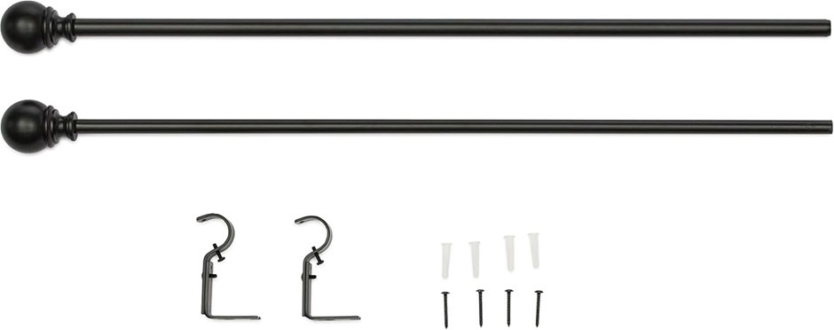 3 x AMAZON BASICS 1.6 cm Curtain Rod with Round Finials, 71 to 122 cm, Black. NB: May be Missing Some Parts. (Code: B07Q2HK18N-K3-MA) (332388-178)