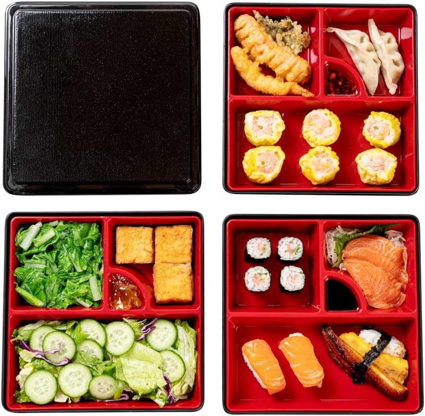 Restaurantware Bento Tek Square Black & Red Japanese Style Bento Box. NB: d