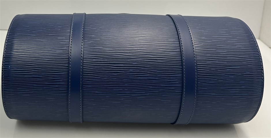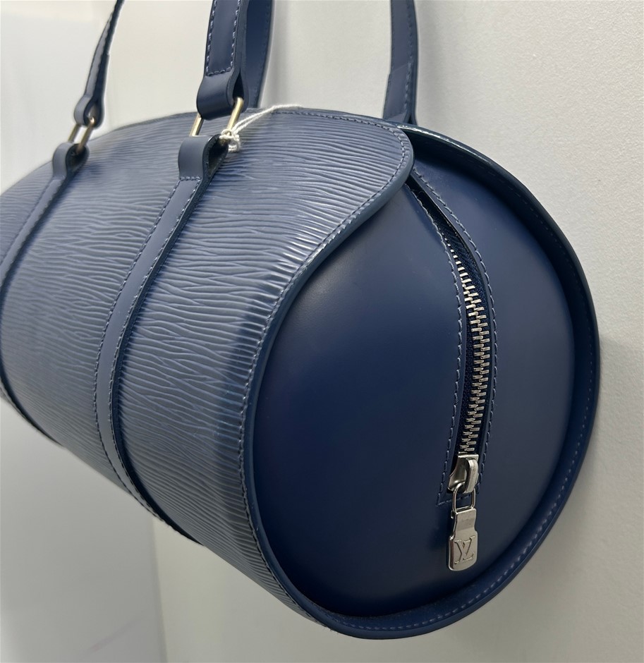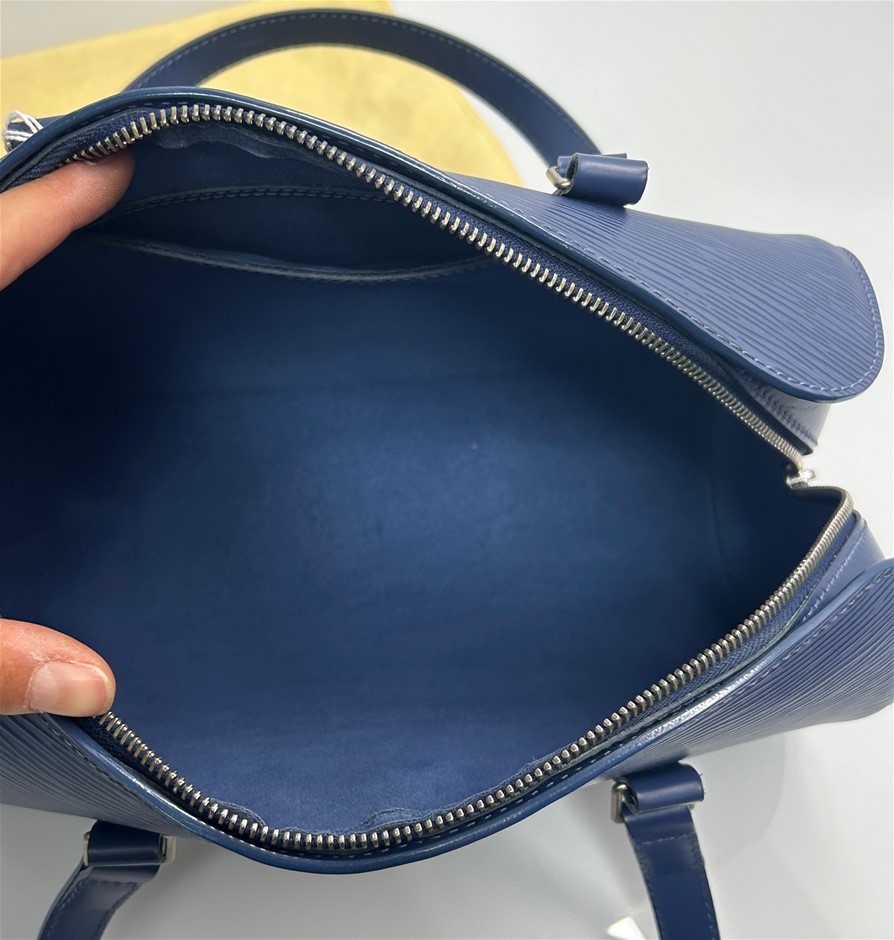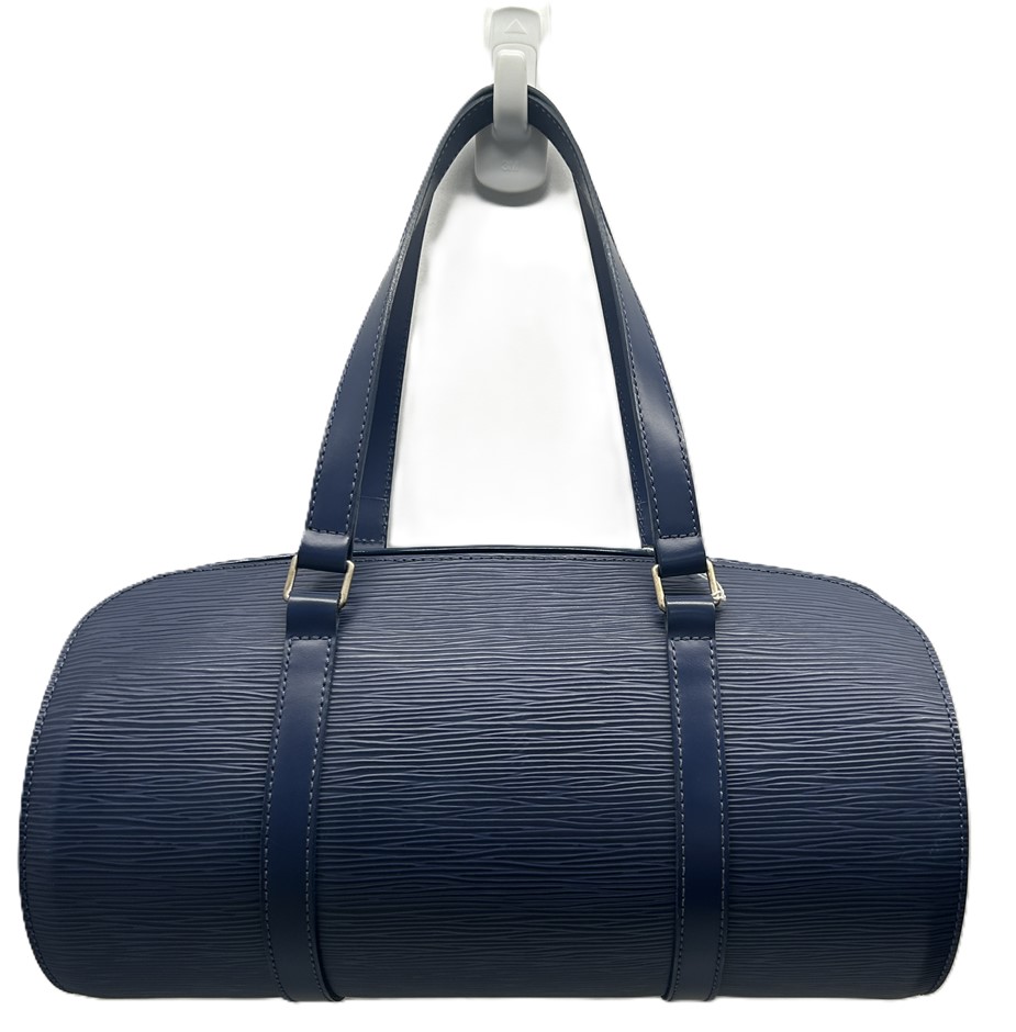 LOUIS VUITTON Blue Myrtile Epi Leather Soufflot Handbag with Cylinder Pouch