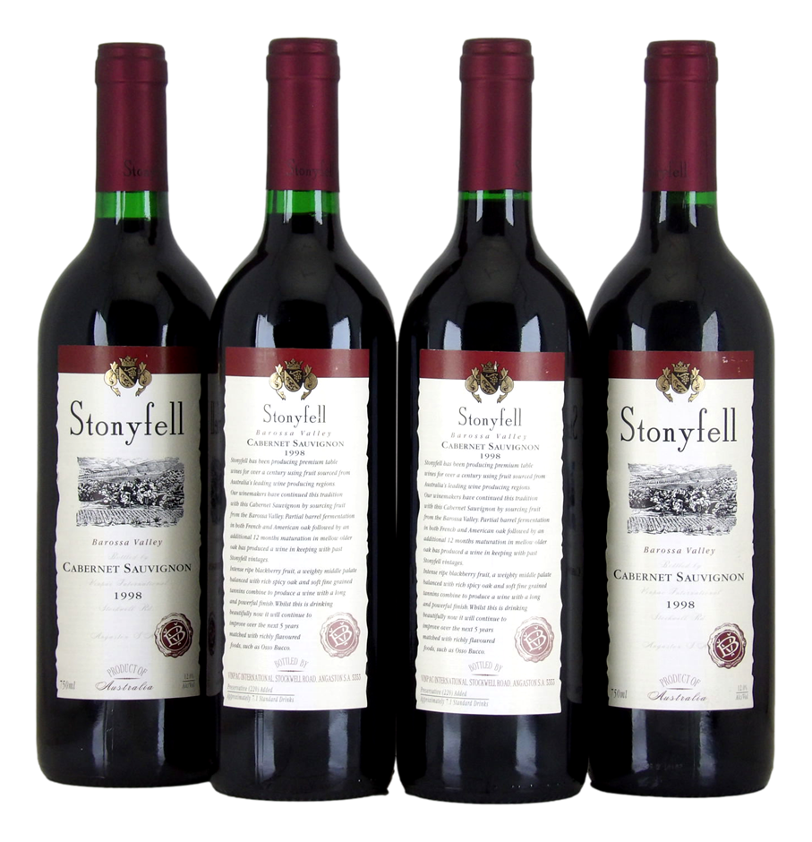 Stoneyfell Barossa Cabernet Sauvignon 1998 (4x 750mL)