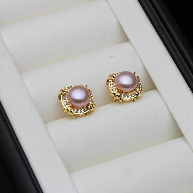 BIJ'OR - Purple Pearl Stud Earrings with Simulated Diamonds in Gold RRP $59