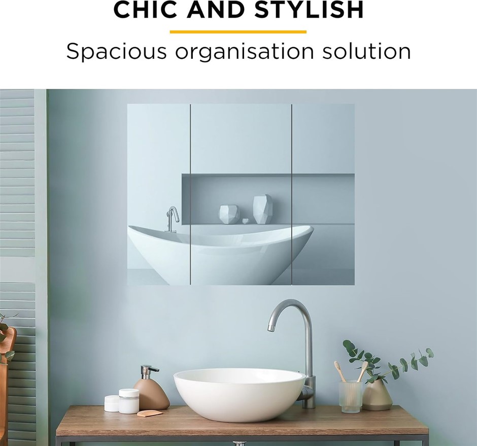 VIVIENDO Bathroom Mirror Cabinet Home Washroom Shaver Stainless Steel Frame Wall-Mounted Vanity Shelf Storage Unit Mirrored Cupboard - 750mm - 2 Door (Code: B0CSSV62FV) (139243-185)