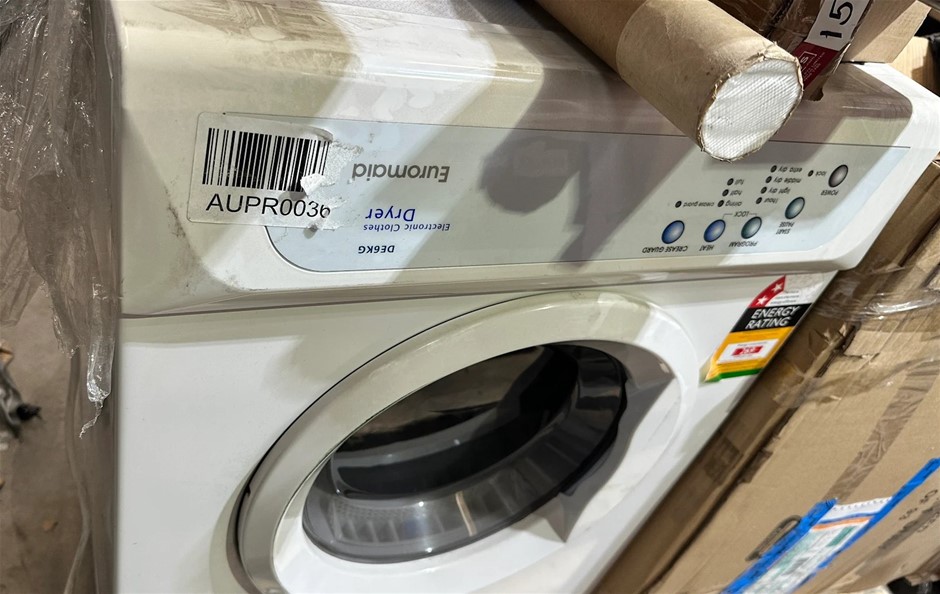 EUROMAID Vented Dryer 6Kg, White, DE6KG. NB: Upside down control panel (Code: EUR-DE6KG-U1) (140605-185)