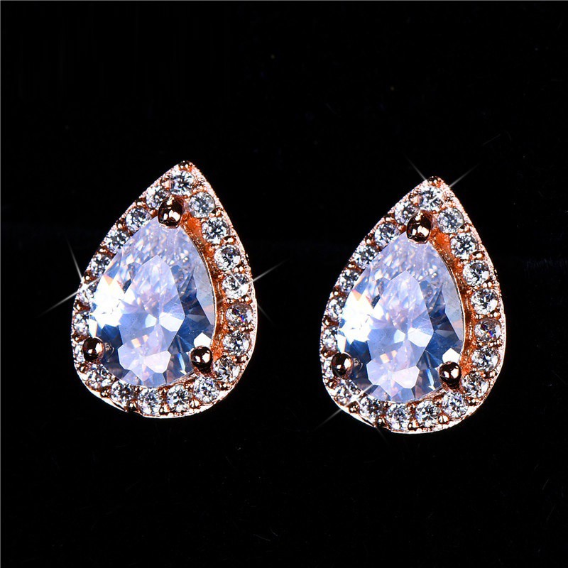 • Designer Simulated Diamond Teardrop Earrings in Rose