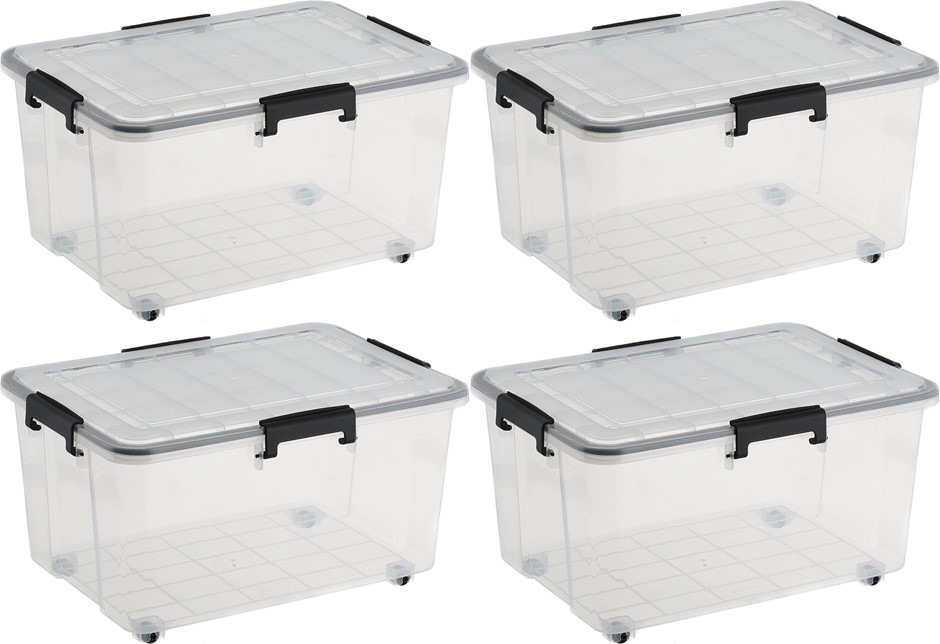 4 x SEYMOURS 30L Super Seal Storage Box with Wheels – Stackable Container with Sealed Lids. (Code: B07VB8GGV9-K4) (139793-187)