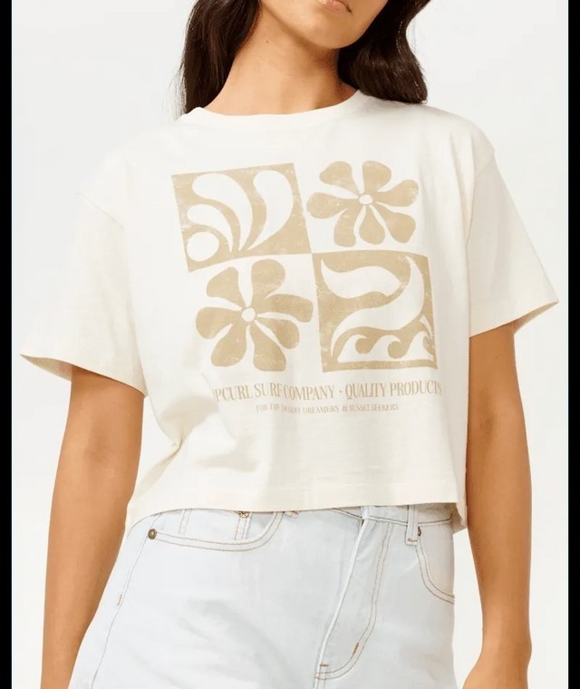 RIP CURL Women`s Sunset Seeker Crop Tee, Size XS, Bone (3021). RRP: $49.99. Buyers Note - Discount Freight Rates Apply to All Regional Areas(Code: 0DXWTE-BONE-XS) (333525-190)
