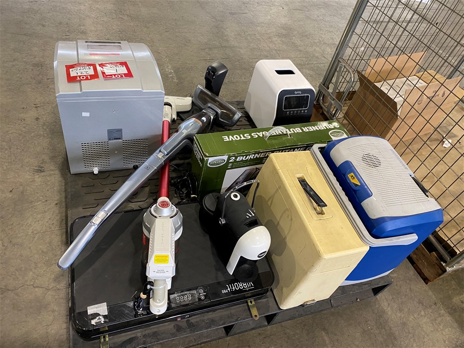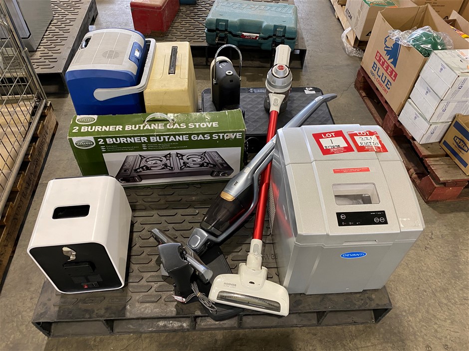 2 burner butane gas stove, stick vacuum cleaners, sewing machines & more. Items not tested and may suit parts. (817898-1)