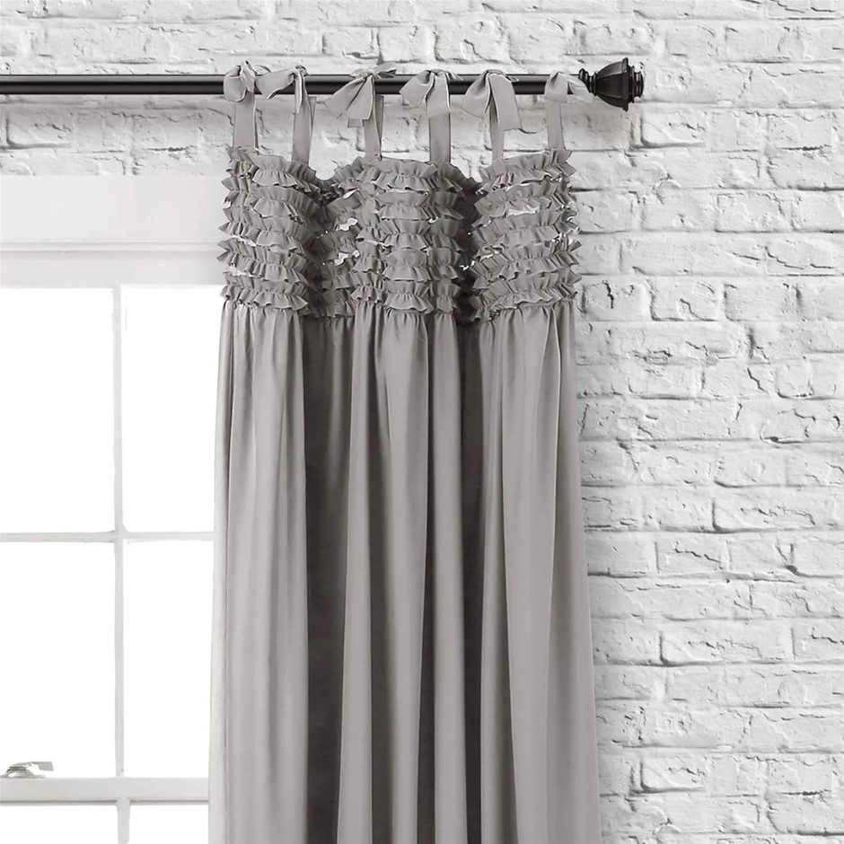 LUSH DECOR Lydia Curtains Ruffle Window Set for Living, Dining, Bedroom (Panel Pair). Size: 84 Inch Length. Colour: Grey. (Code: B07CG5ZT6R) (140153-192)