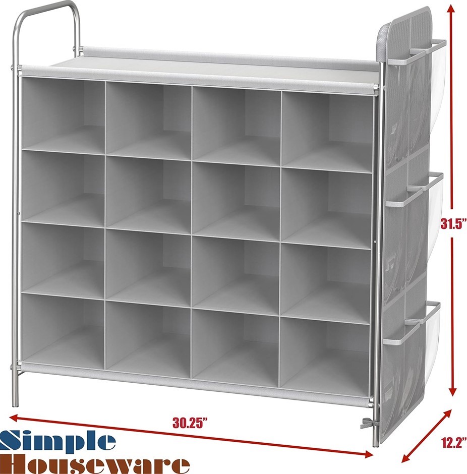 SIMPLE HOUSEWARE 4-Tier 16-Cube Shoe Rack Organizer, Grey. (Code: B0BJP63FW4) (334137-192)