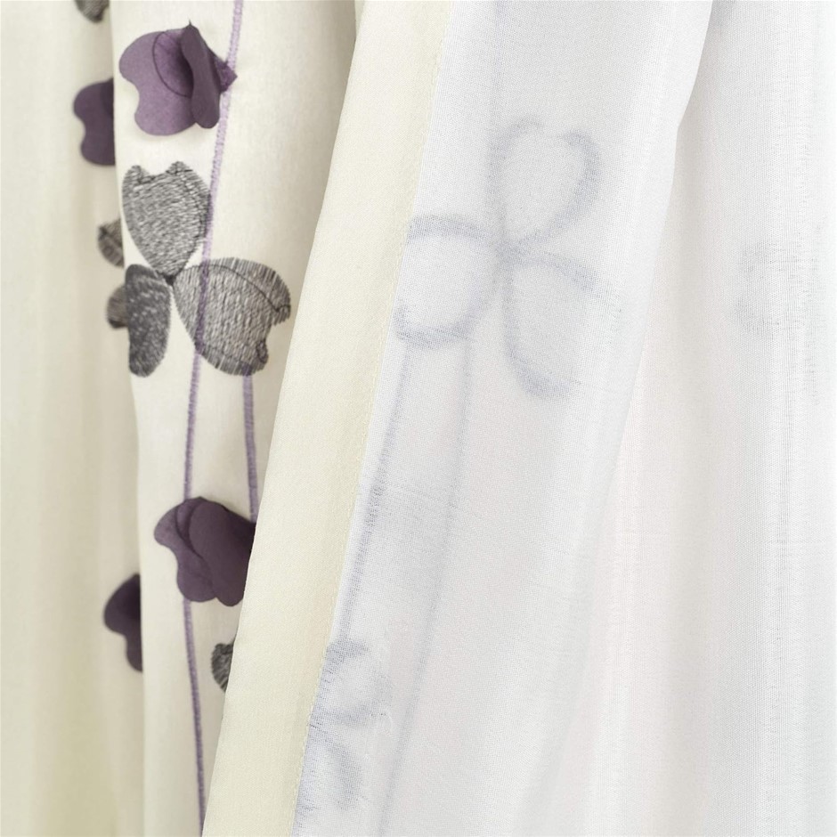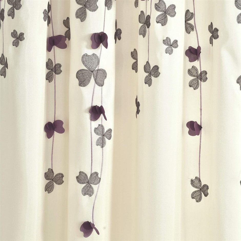 2 x LUSH DECOR Flower Drop Curtain Panel, 42 x 84" Purple/Cream.