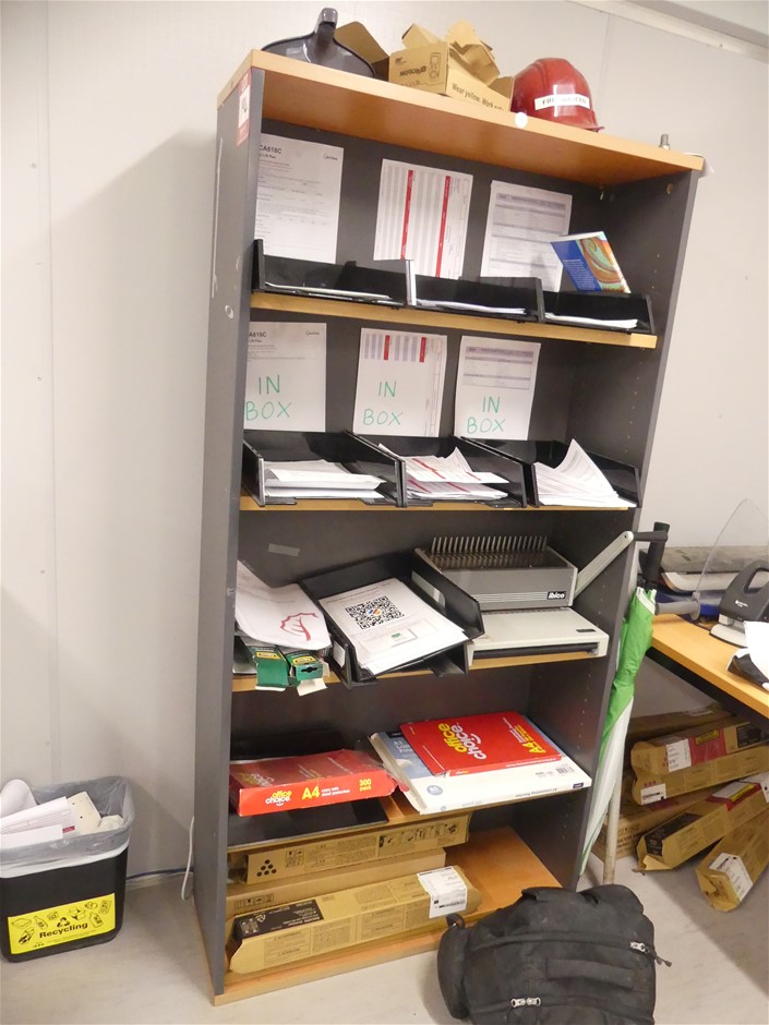 1 x Office Bookshelf With 5 x ShelvesPine And Charcoal Laminate ConstructionApprox 900 x 300 x 1800 Mm