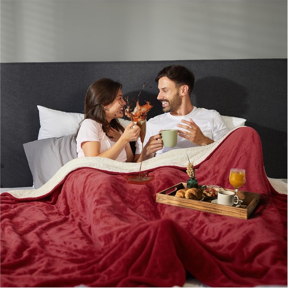 SACRED WEAPON Waterproof Dual Soft Sherpa & Fleece Throw, 80`` x 50``, Dark Red. (Code: B0CDXQQQ75) (334423-195)