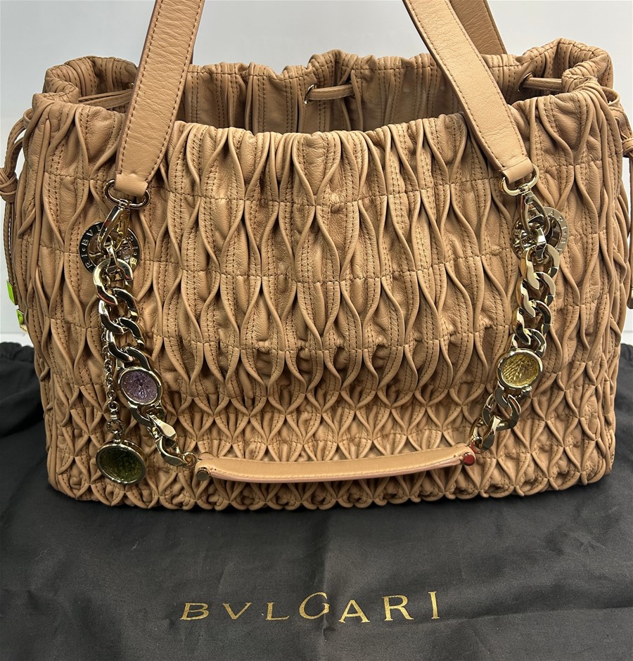 BVLGARI Willow Matelaisse Monete Beige Tote Bag