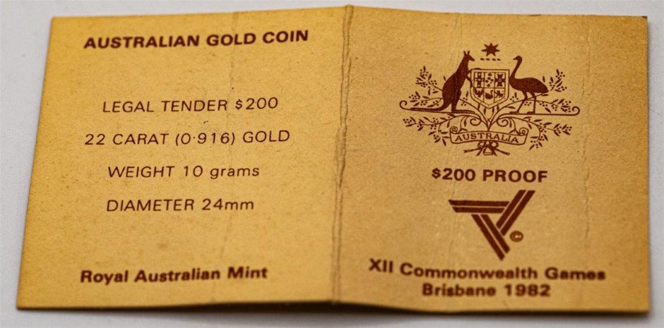 1982 $200 22 Ct Gold Coin XII Commonwealth Games issued by Australian Mint