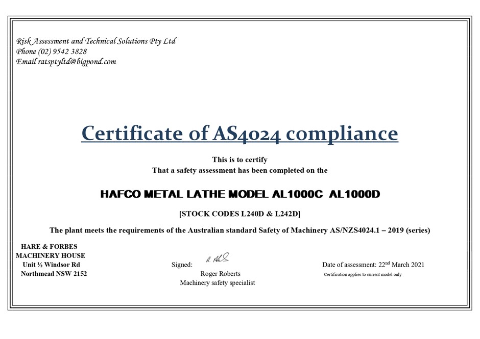 • Power: 240V (model dependent, standard for Australian workshops)