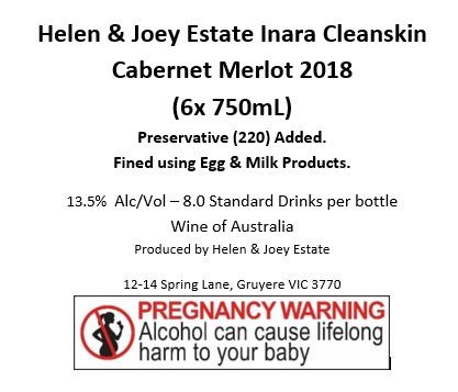 Helen & Joey Estate Inara Cleanskin Cabernet Merlot 2018 (6x 750mL) VIC