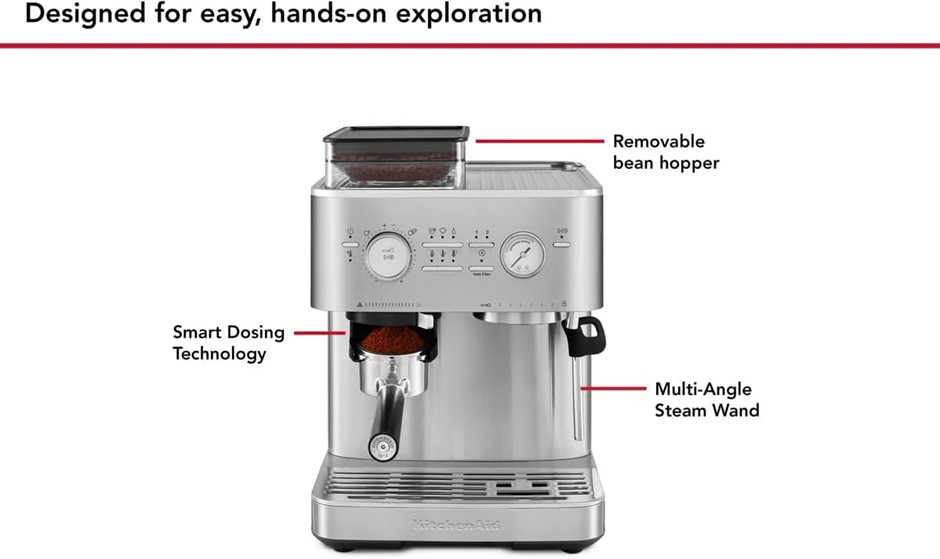 KITCHENAID Stainless Steel Semi Automatic Espresso Machine with Burr Grinder. NB: Unit Has Problems. (Code: B0FCQJZ825-D) (333121-205)