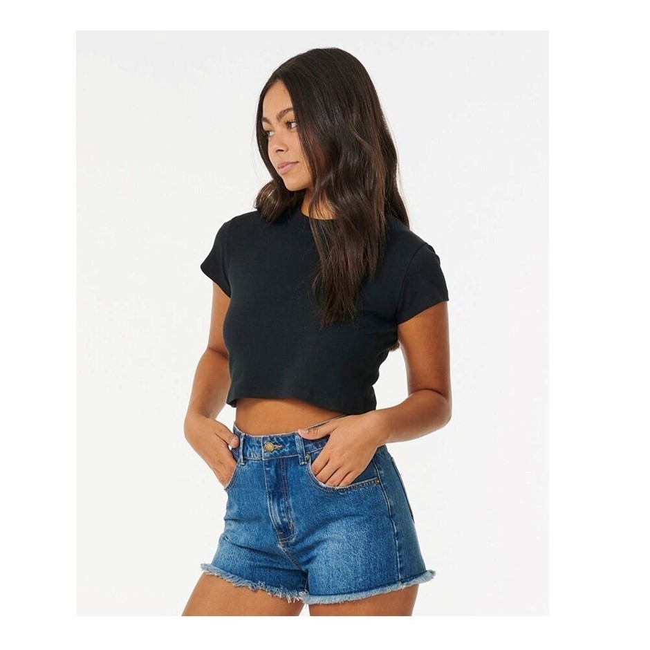 RIP CURL Women's Classic Ribbed T-Shirt, Size S, Black. RRP: $49.99. Buyer