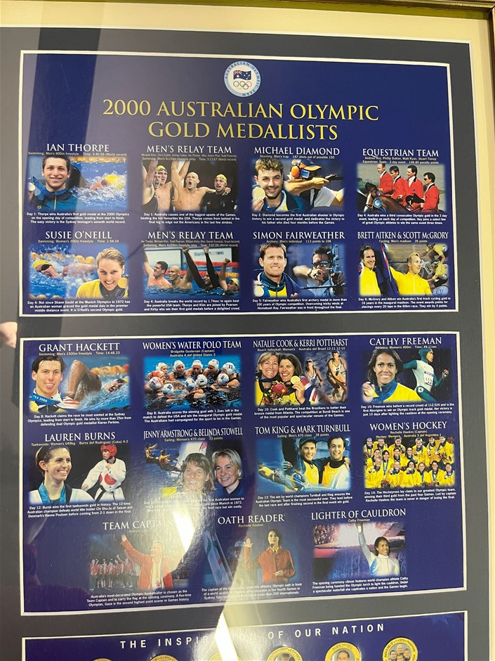 2000 Sydney Olympics Australian Olympic Team Gold Medallist Memorabilia Medallions - Framed